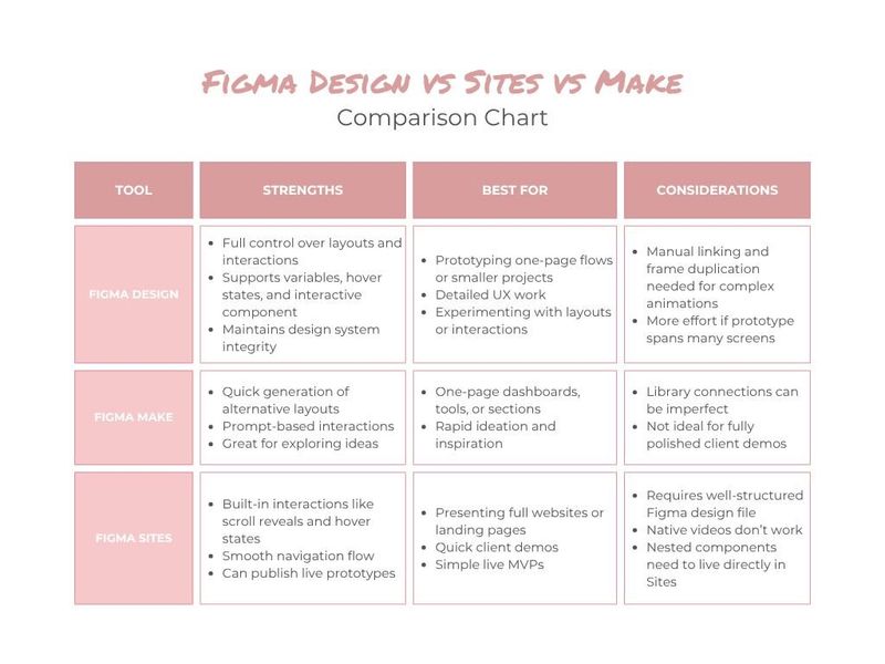 Comparing Figma Design, Make, and Sites to see which works best for multi-page prototypes.