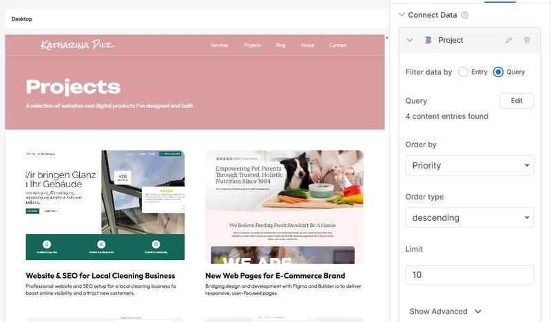 A closer look at how I used Builder.io to set up my portfolio site. From importing Figma designs to structuring content and launching without a traditional CMS.