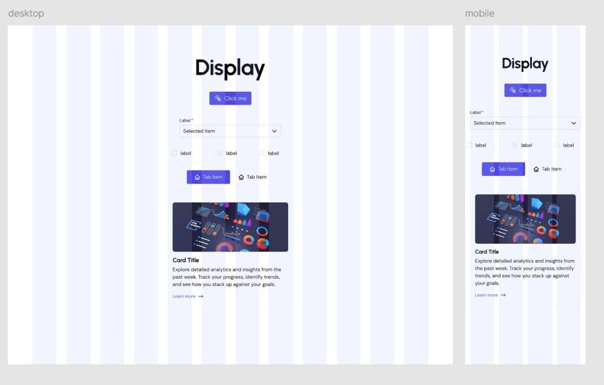 Switch to tablet mode, and those same tokens adapt. The grid variables redefine the number of columns and margins, so the card automatically resizes in a way that still feels intentional. Spacing tokens keep the internal padding consistent, while the radius stays the same across breakpoints, maintaining a recognizable look.