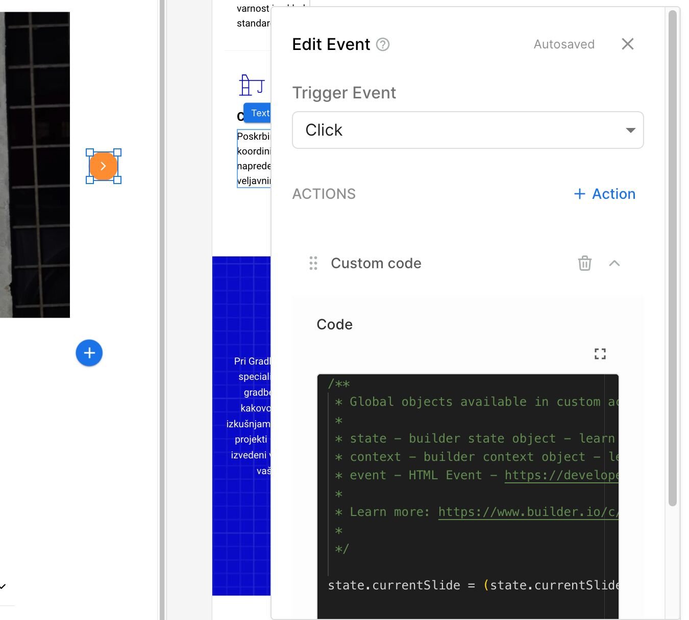 Run Code vs Set State: For any logic beyond simple value assignment, you need Run Code. Set State works for things like "set currentSlide to 2," but not for "increment currentSlide by 1 unless it's at the end, then reset to 0."