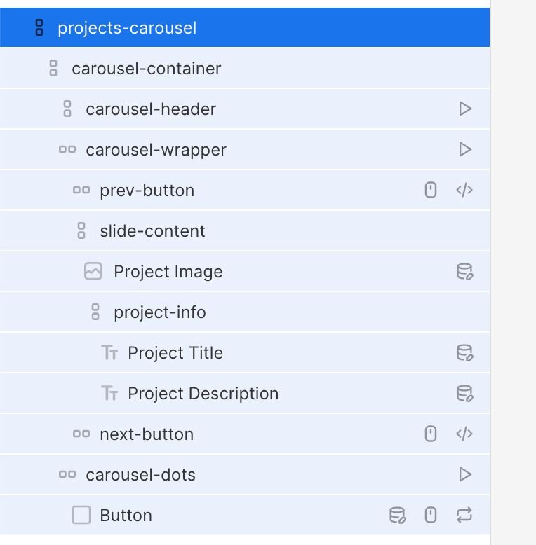Rather than spend more time troubleshooting why one specific widget wouldn't show up, I decided to build the carousel from scratch using Builder.io's built-in state management and data bindings. It turned out to be surprisingly straightforward once I understood the right patterns, and it gave me complete control over the behavior and styling.