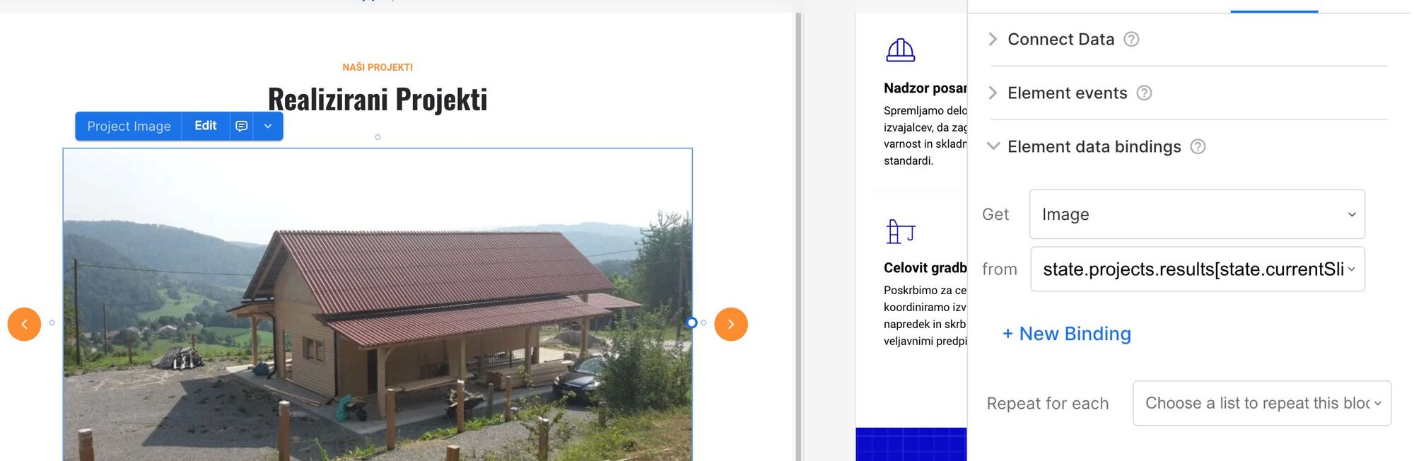 imagestate.projects.results[state.currentSlide]?.data?.projectImageDo the same for the title and description but using Get: Text: