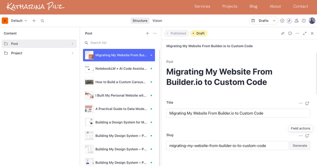 Migrating my existing content from Builder.io into Sanity is a whole separate story. I'll cover that in a dedicated post.